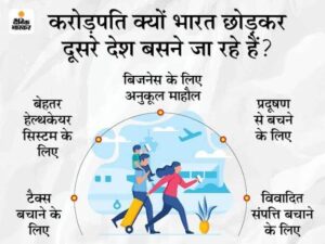 पिछले कुछ वर्षों में भारत से अमीरों के बाहर जाने की रफ्तार बढ़ी है। अनुमान के मुताबिक, साल 2023 और 2024 में लगभग 6,000 से 7,000 करोड़पतियों ने भारत छोड़ने का फैसला किया। भारत इस मामले में चीन के बाद दूसरे स्थान पर है। ये वे लोग हैं जिनके पास निवेश करने योग्य संपत्ति 1 मिलियन डॉलर (करीब 8.3 करोड़ रुपये) से अधिक है। 2. क्या टैक्स का बोझ है असली विलेन?